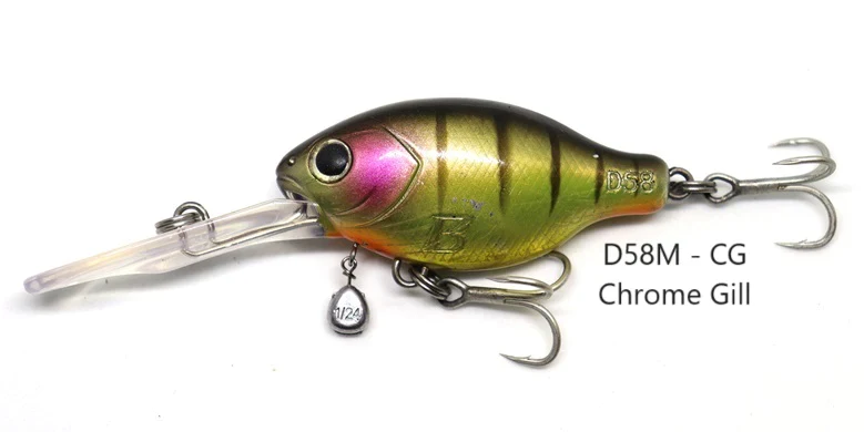 The bite sized bait for many situations. With a tight action, can be used as a suspending jerkbait for impoundment bass and barra, when rigged with a 1/24Oz Chin Nut. Remove the Chin Nut for a great trolling or casting crankbait with good bouyancy to float off snags. For ultimate versatility add a 1/6 or 1/4 Oz Chin Nut and use it like a soft vibe. The DETON8OR 58M is a fish catching weapon!